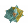 Doudou plat éléphant 23x23 cm environ, gris turquoise, 4 nouages. Etat. : Comme neuf