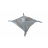 Doudou carré plat gris 4 nouages 15x15 cm environ, motif tête de lapin blanc Mon P'tit lapin inscrit. Etat : Comme neuf