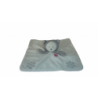 Doudou plat ours 20x20 cm environ, blanc écru bleu, attache tétine. Etat : Comme neuf (étiquette marque coupée)