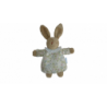 Doudou hochet lion 18 cm environ, grelot, marron blanc motif palmiers. Etat : Neuf