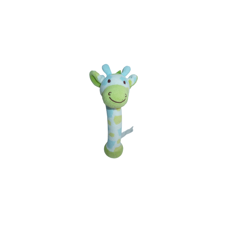 Doudou hochet girafe 20 cm environ, grelot , blanc vert turquoise. Etat : Très bon état (mais avec des micros taches, rien de méchant) DOUDOU DIFFICILE A TROUVERRecipient :