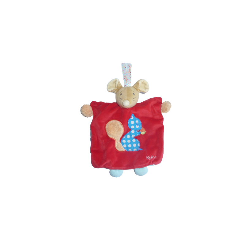 Doudou marionnette souris 26 cm environ, rouge bleu motif écureuil. Etat : Comme neuf. DOUDOU DIFFICILE A TROUVER.