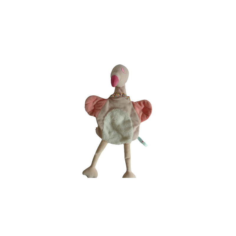 Doudou marionnette cigogne 42 cm environ, blanc rose. Etat : Comme neufRecipient :