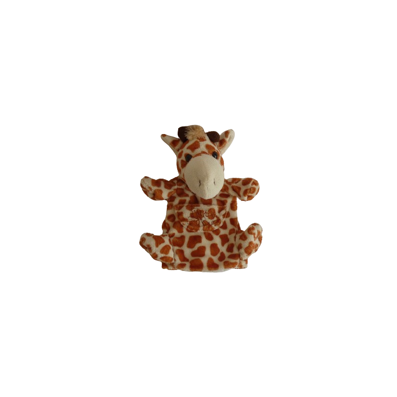 Doudou marionnette girafe 25 cm environ, marron écru. Etat : Très bon état (étiquette d'informations coupée)Recipient :