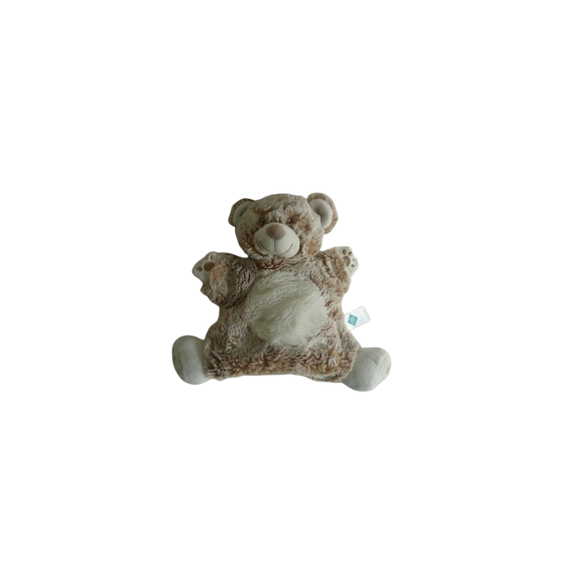Doudou marionnette ours 24 cm environ, marron chiné blanc. Etat : comme neufRecipient :