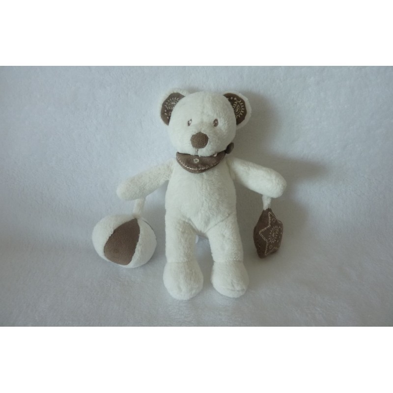 Description du doudou : Doudou peluche ours de 22 cm environ, balle grelot. Doudou super doux. Etat : Comme neuf. Produit original.Recipient :