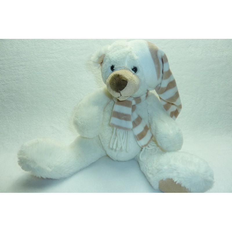 Description du doudou : Doudou peluche ours de 29 cm environ (position assise), billes au popotin, porte un bonnet et une écharpe. Doudou super doux. Etat : Neuf sans étiquette boutique. Produit original. DOUDOU DIFFICILE A TROUVERRecipient :
