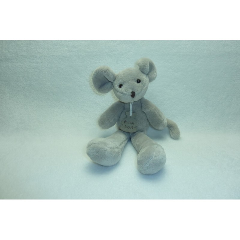 Description du doudou : Doudou peluche souris de 30 cm environ , billes au popotin et les pattes. Coloris : gris. Doudou super doux. Etat : Neuf sans étiquette boutique. Produit original. DOUDOU DIFFICILE A TROUVER