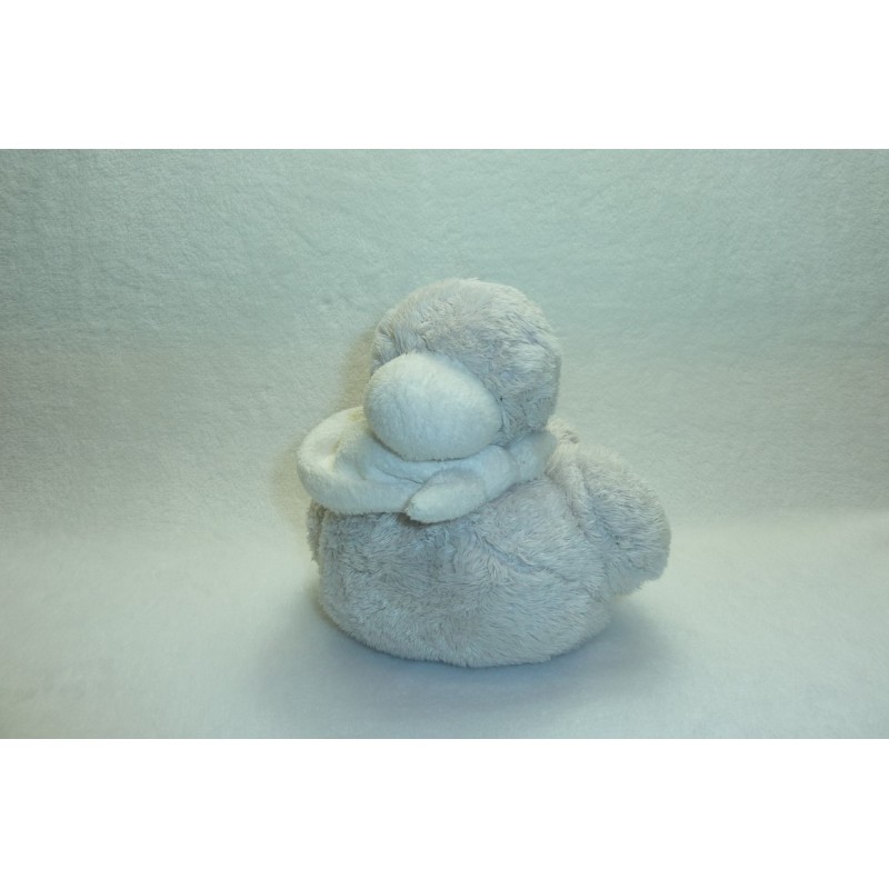 Description du doudou : Doudou peluche canard de 19 cm environ de hauteur, billes au popotin et dans les ailes. Coloris principaux : gris, blanc. Doudou super doux. Etat : Comme neuf (étiquette d'informations coupée). Produit original. DOUDOU DIFFICILE A TROUVERRecipient :