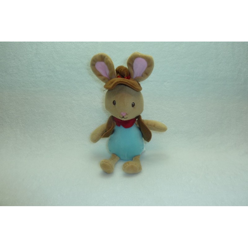 Description du doudou : Doudou peluche lapin 28 cm (tout compris). Coloris : marron, turquoise, bandana rouge. Doudou super doux. Etat : Comme neuf. Produit original. DOUDOU DIFFICILE A TROUVERRecipient :