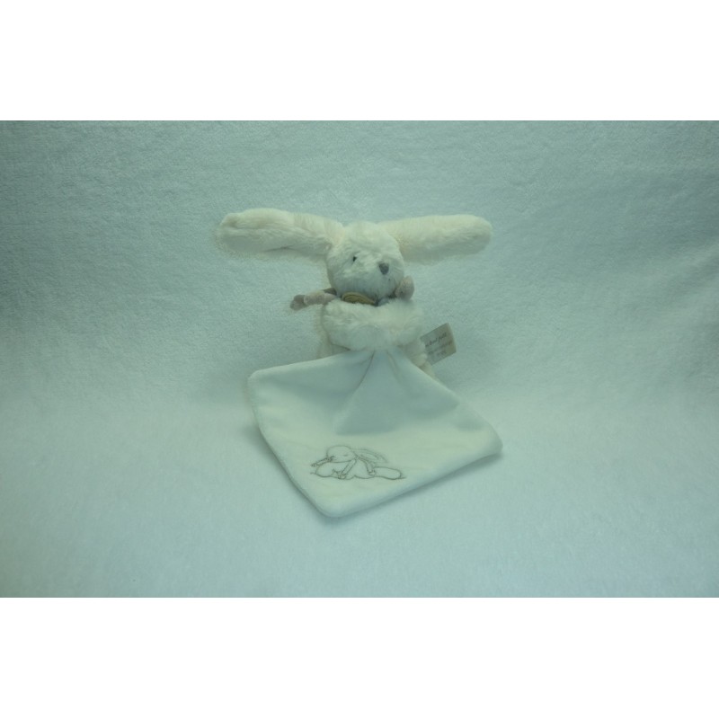 Description du doudou : Doudou peluche lapin avec mouchoir. Coloris : blanc taupe, lapin brodé sur le mouchoir. Doudou super doux. Etat : Comme neuf. Produit original. DOUDOU DIFFICILE A TROUVER
