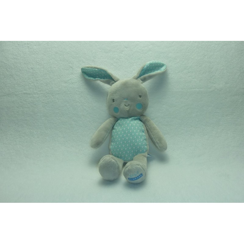 Description du doudou : Doudou 27 cm environ (sans les oreilles). Coloris : gris, turquoise motif alvéoles. Doudou super doux. Etat : Neuf sans étiquette boutique, produit original.