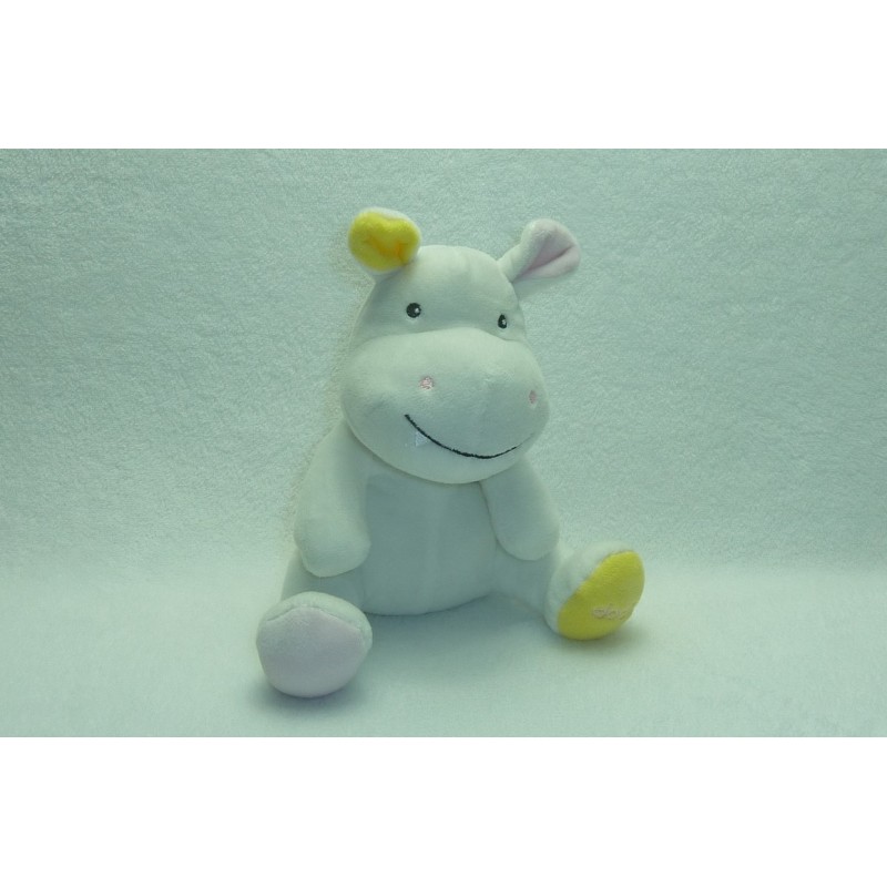 Description du doudou : Doudou peluche hippopotame de 21 cm environ en position assise et avec les oreilles. Coloris principal : blanc. Doudou super doux. Etat : Neuf sans étiquette boutique. Produit original. DOUDOU DIFFICILE A TROUVER