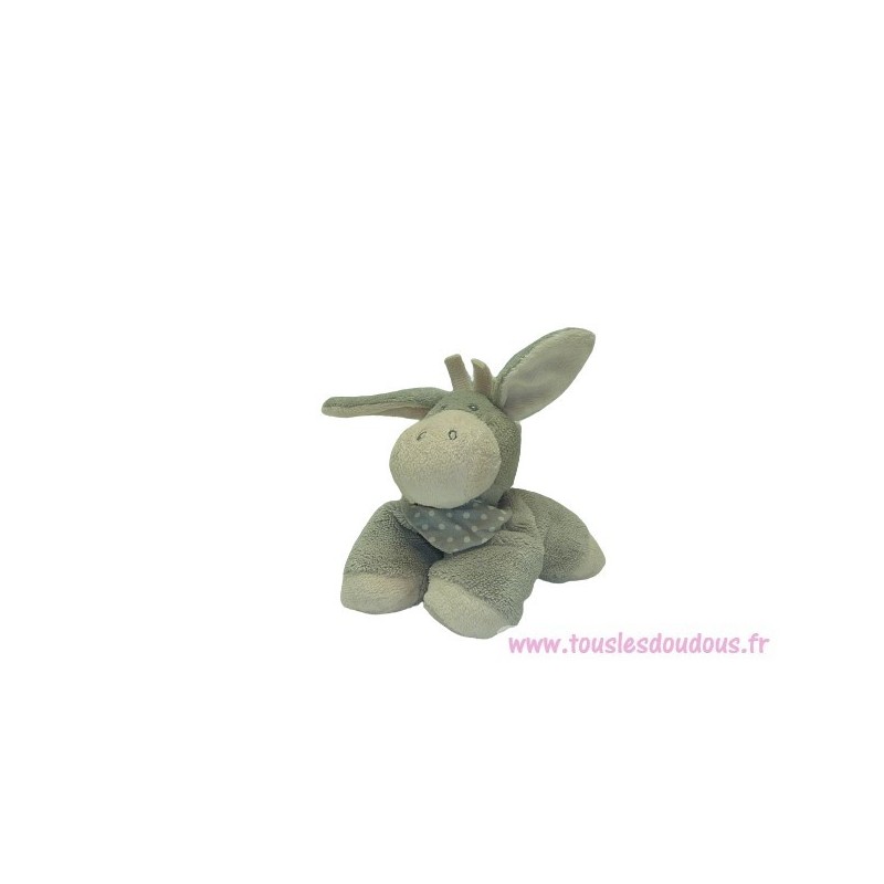 Description du doudou : Doudou peluche âne de 15 cm environ de hauteur sans les oreilles, grelot, billes aux pattes, Coloris : gris, beige. Doudou super doux. Etat : Excellent état. SOS DOUDOU DIFFICILE A TROUVER.