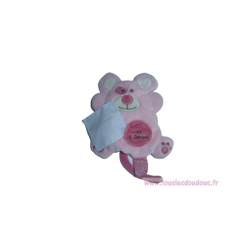 Doudou peluche souris 18 cm environ, billes dans le corps, rose blanc, mouchoir blanc. Etat : Comme neuf. SOS DOUDOU DIFFICILE A TROUVER.