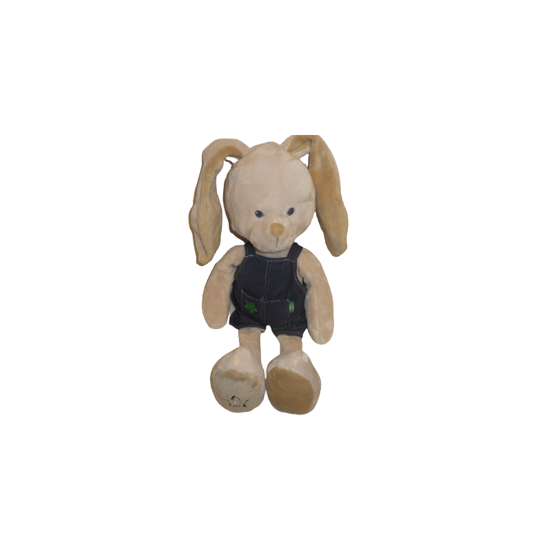 Doudou peluche lapin 54 cm environ (sans les oreilles), gris salopette bleue. Etat : Neuf sans étiquette boutique. DOUDOU DIFFICILE A TROUVER.