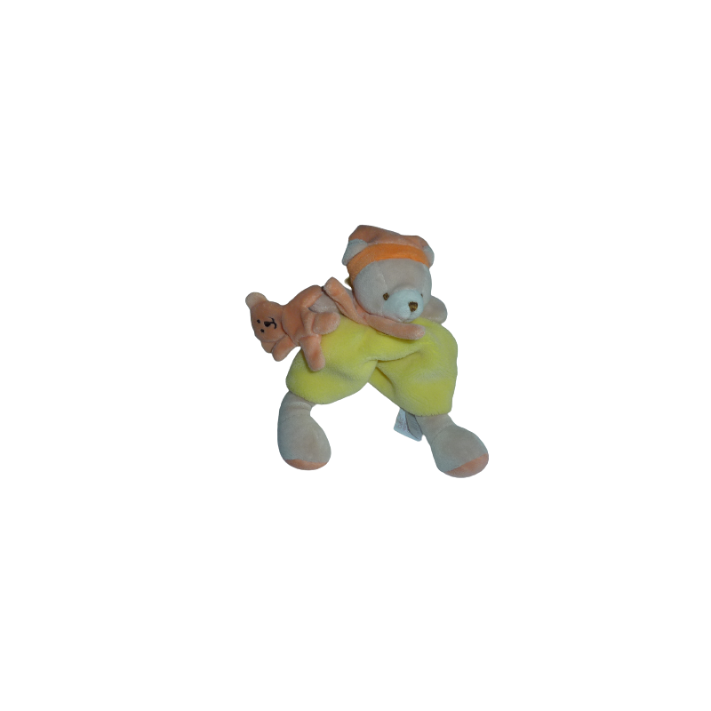 Doudou peluche ours 21 cm environ, jaune. Etat : Comme neuf. DOUDOU DIFFICILE A TROUVER.