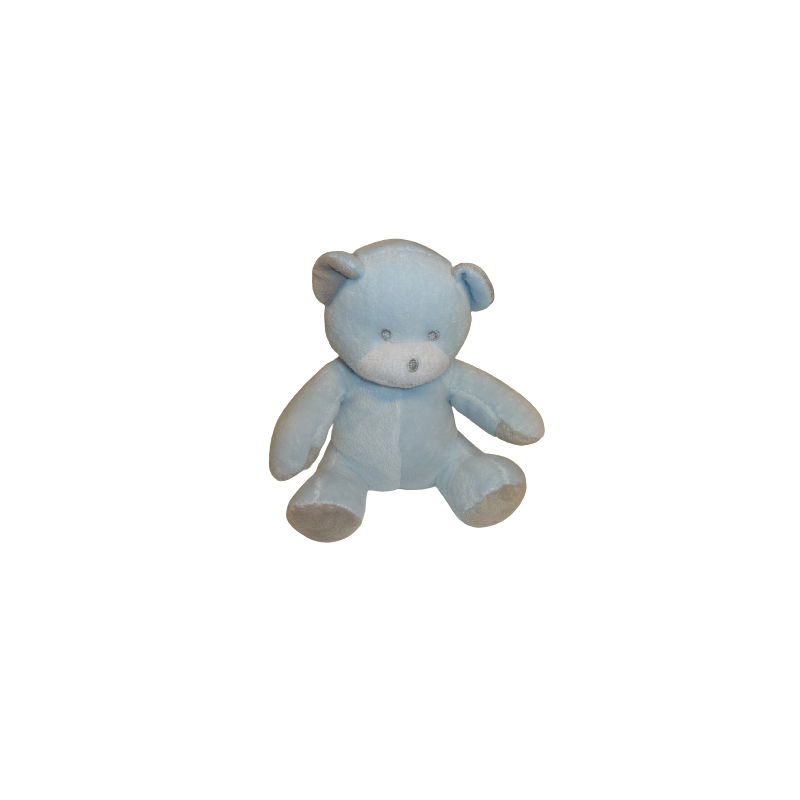 Doudou peluche ours 18 cm environ, bleu. Etat : Neuf sans étiquette boutique. DOUDOU DIFFICILE A TROUVER.