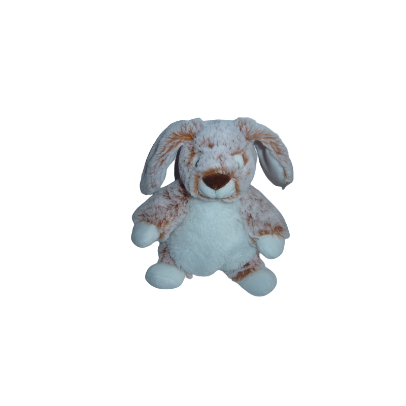 Doudou peluche lapin 24 cm environ sans les oreilles, billes dans le corps, orange chiné blanc. Etat : Neuf sans étiquette boutique. DOUDOU DIFFICILE A TROUVER.