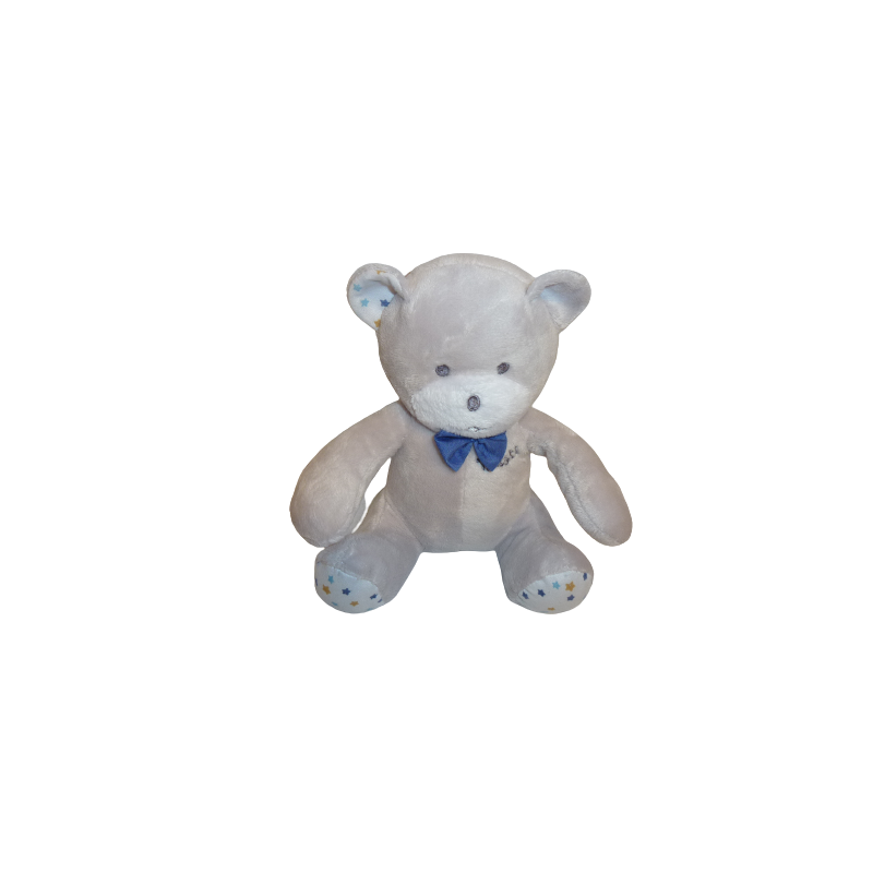 Doudou peluche ours 18 cm environ, gris motif étoiles. Etat : Neuf sans étiquette boutique. DOUDOU DIFFICILE A TROUVER.