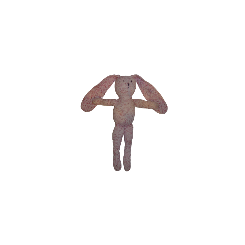 Doudou peluche lapin 30 cm environ sans compter les oreilles, tissu fleuri. Bon état. DOUDOU DIFFICILE A TROUVER.Recipient :