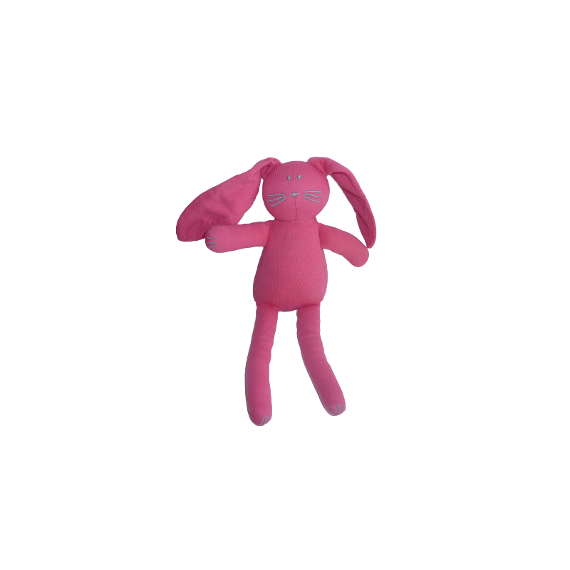 Doudou lapin peluche 24 cm environ sans les oreilles, fushia. Etat : Très bon état mais petite tache sur une oreille. DOUDOU DIFFICILE A TROUVER