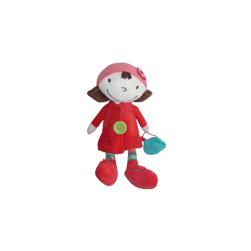 Doudou peluche poupée 37 cm environ, rouge multicolore. Etat : Excellent état. DOUDOU DIFFICILE A TROUVERRecipient :