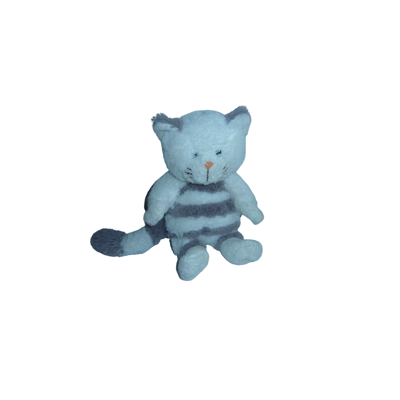 Doudou peluche chat 23 cm environ, billes au popotin, gris blanc. Etat : Comme neuf. DOUDOU DIFFICILE A TROUVER