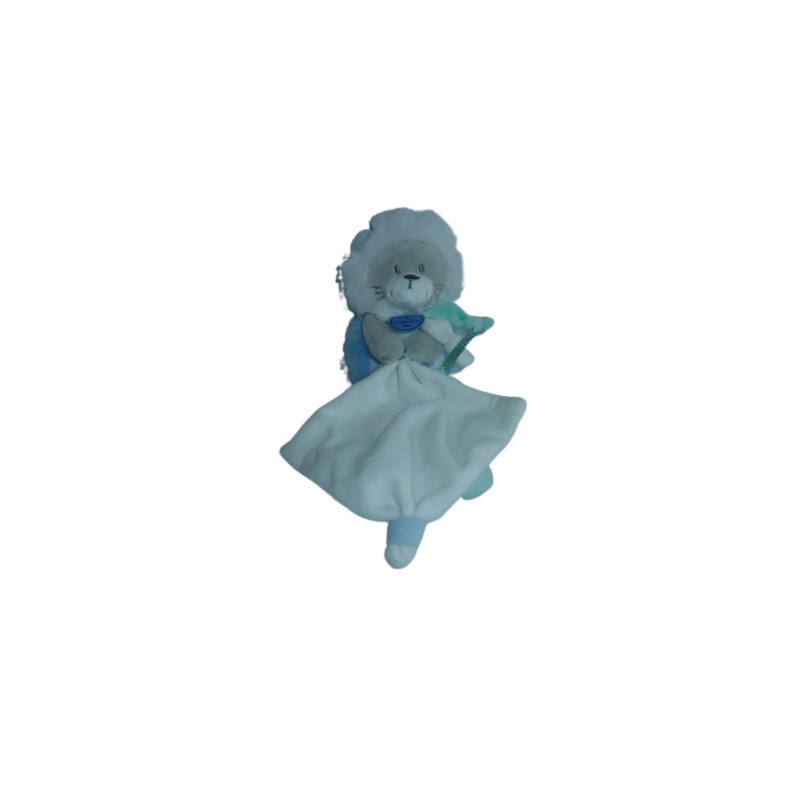Doudou peluche mouchoir lion 24 cm environ bleu blanc. Etat : Neuf sans étiquette boutique. DOUDOU DIFFICILE A TROUVER