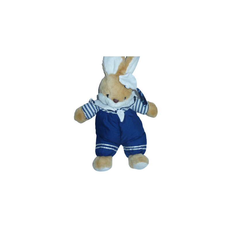 Doudou peluche lapin style vintage, 37 cm environ oreilles comprises, habillé en marin, bleu blanc. Etat : Comme neuf. DOUDOU DIFFICILE A TROUVER