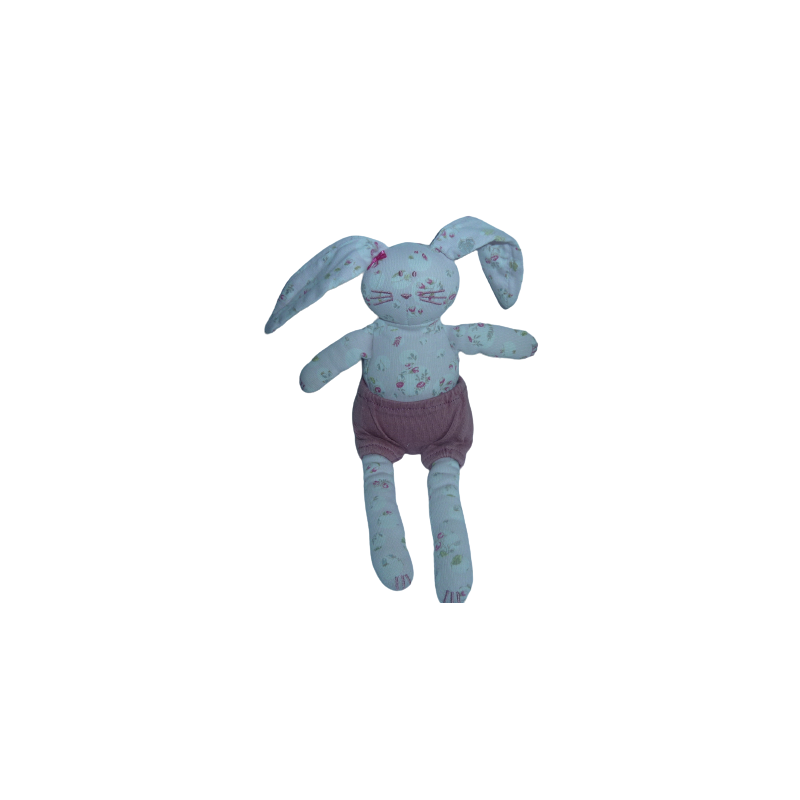 Doudou peluche lapin 25 cm environ sans les oreilles, tissu fleuri. Etat : Etat correct pour doudou de secours. DOUDOU DIFFICILE A TROUVER
