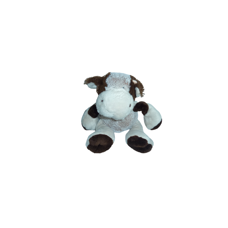 Doudou peluche vache 23 cm environ, marron écru beige. Etat : Comme neufRecipient :