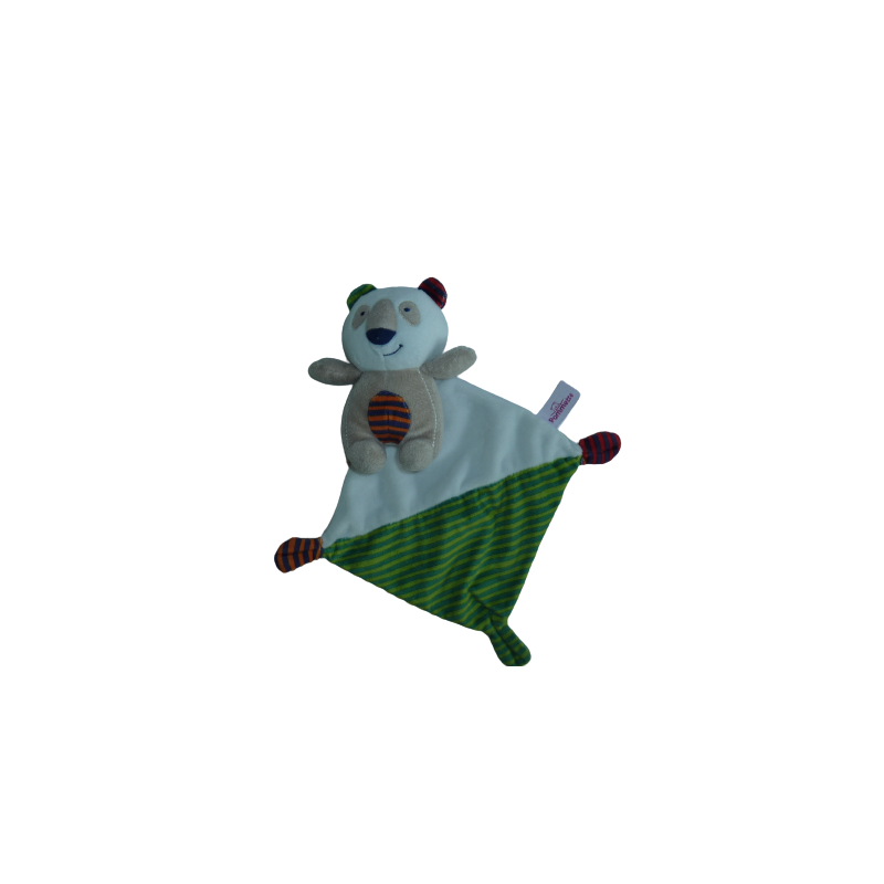 Doudou peluche mouchoir 15 cm environ, marron blanc rayures vertes. Etat : Comme neufRecipient :