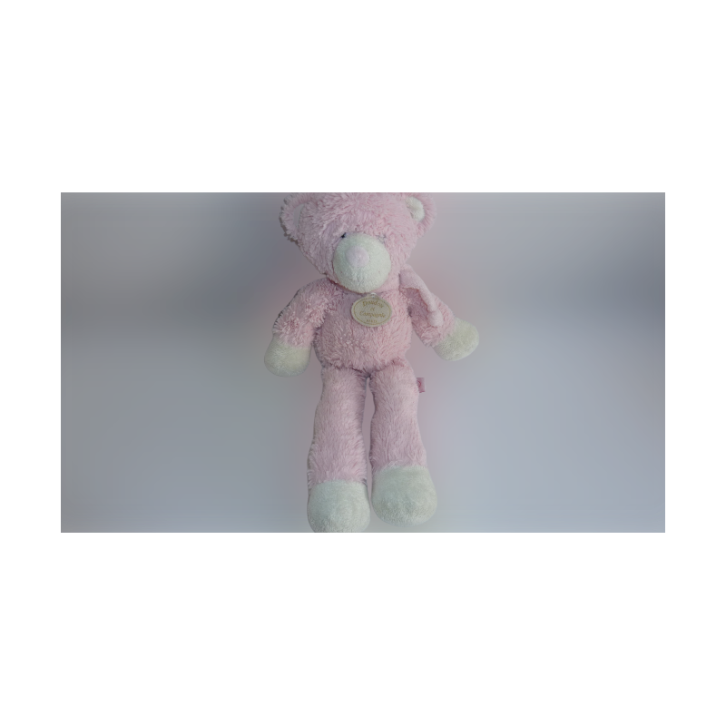 Doudou peluche ours 38 cm environ, billes aux pattes et popotin, rose écru. Etat : Bon état pour doudou de secours
