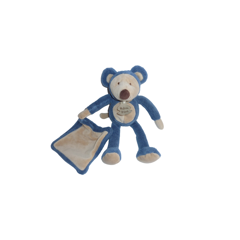 Doudou peluche mouchoir souris 29 cm environ, bleu marron. Etat : Comme neuf