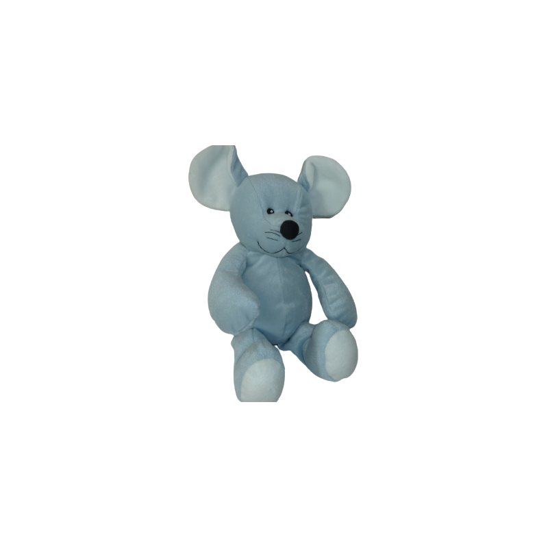 Doudou peluche souris 40 cm environ, oreilles bruissante, gris bleuté . Etat : Comme neuf
