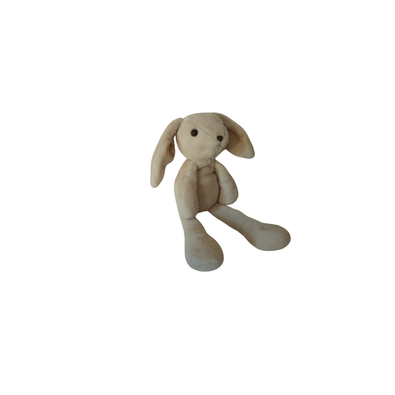 Doudou peluche lapin beige 40 cm environ, billes au popotin et pattes. Etat : La peluche est en très bon état (de légères marques d'usures rien de méchant et l'écusson a été coupé)