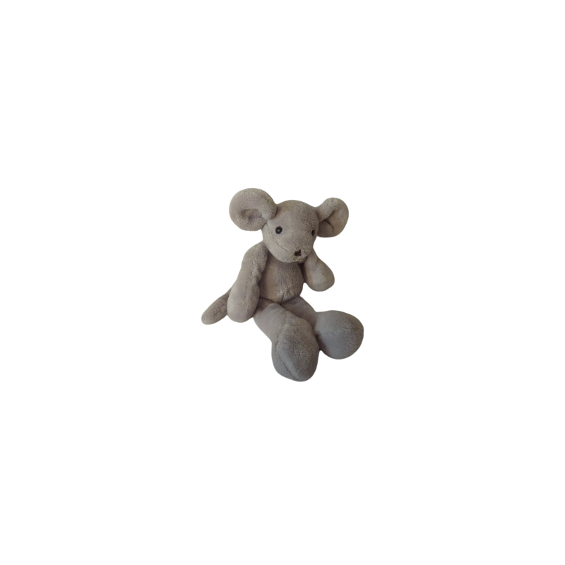 Doudou peluche souris gris 28 cm environ. Etat : Très bon état, manque l'écusson, idéal doudou de secours