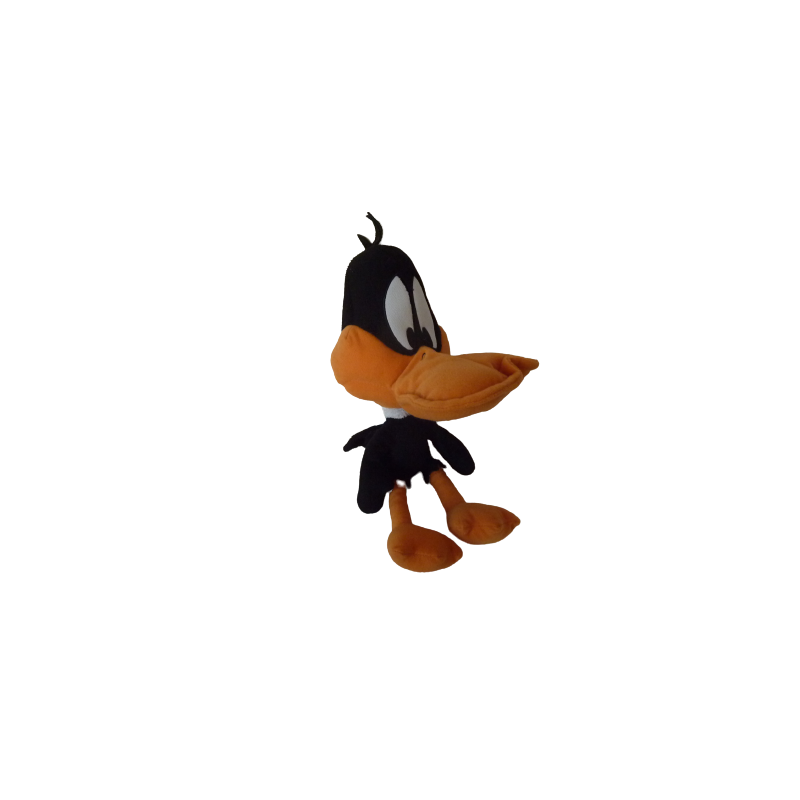Doudou peluche Duffy Duck le canard 36 cm environ, noir orange. Etat : Très bon état (étiquette de la marque coupée)Recipient :