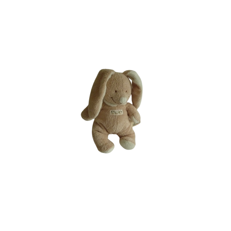 Doudou peluche lapin 24 cm environ sans compter les oreilles, marron écru. Etat : Comme neuf