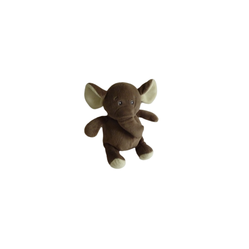 Doudou peluche éléphant 20 cm environ, marron écru. Etat : Comme neuf