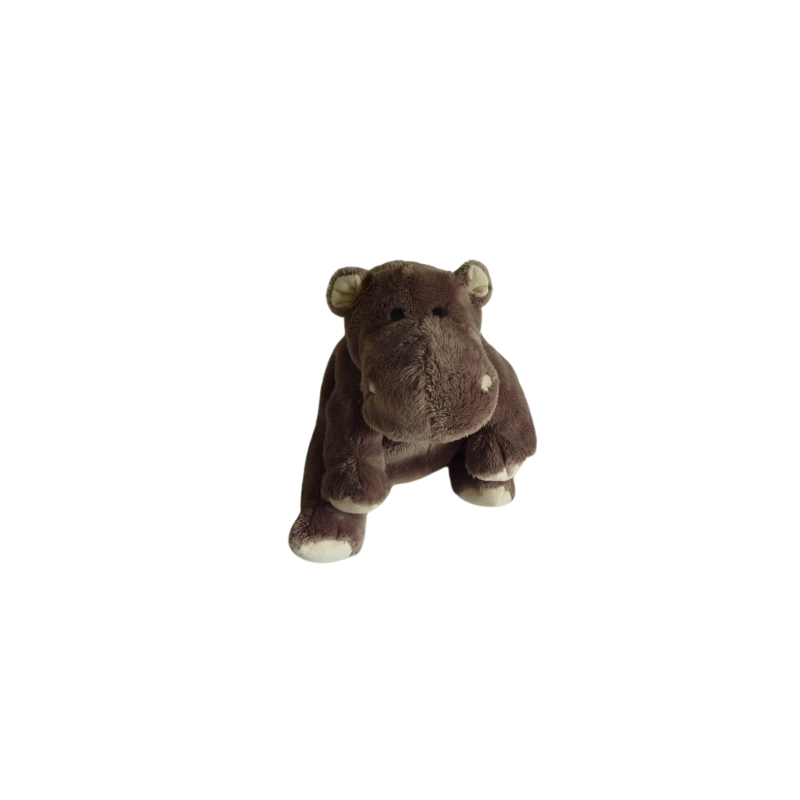 Doudou peluche hippopotame 26 cm environ de hauteur, billes au popotin et pattes, marron écru. Etat : Excellent état