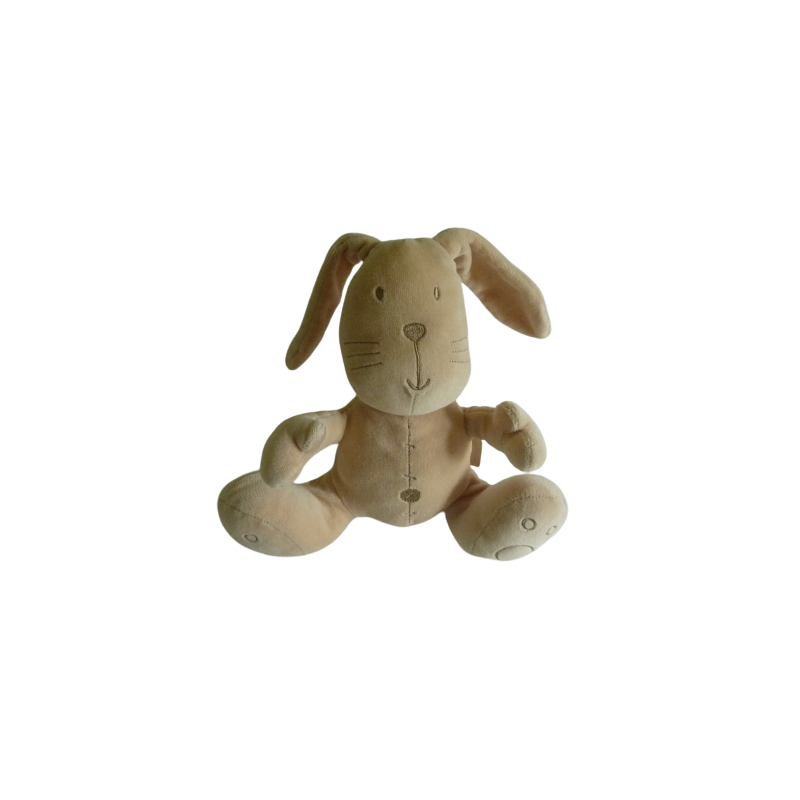 Doudou peluche lapin marron 28 cm environ sans compter les oreilles. Etat : Comme neufRecipient :