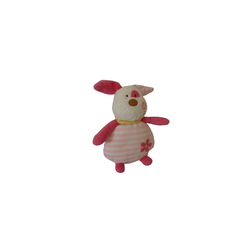 Doudou peluche chien 20 cm environ, rose rayures. Etat : Très bon état