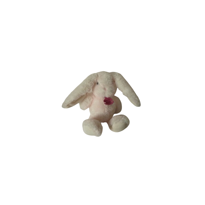 Doudou peluche lapin 23 cm environ sans compter les oreilles, billes dans le ventre, rose crème. Etat : Comme neufRecipient :