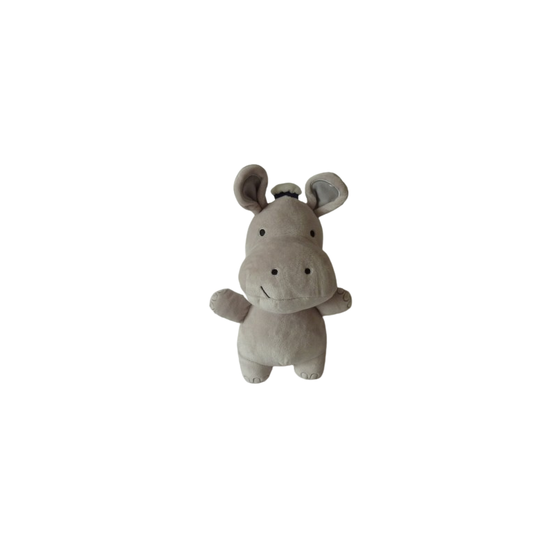 Doudou peluche hippopotame 31 cm environ, gris porte une chapeau marin sur la tête. Etat : Comme neuf