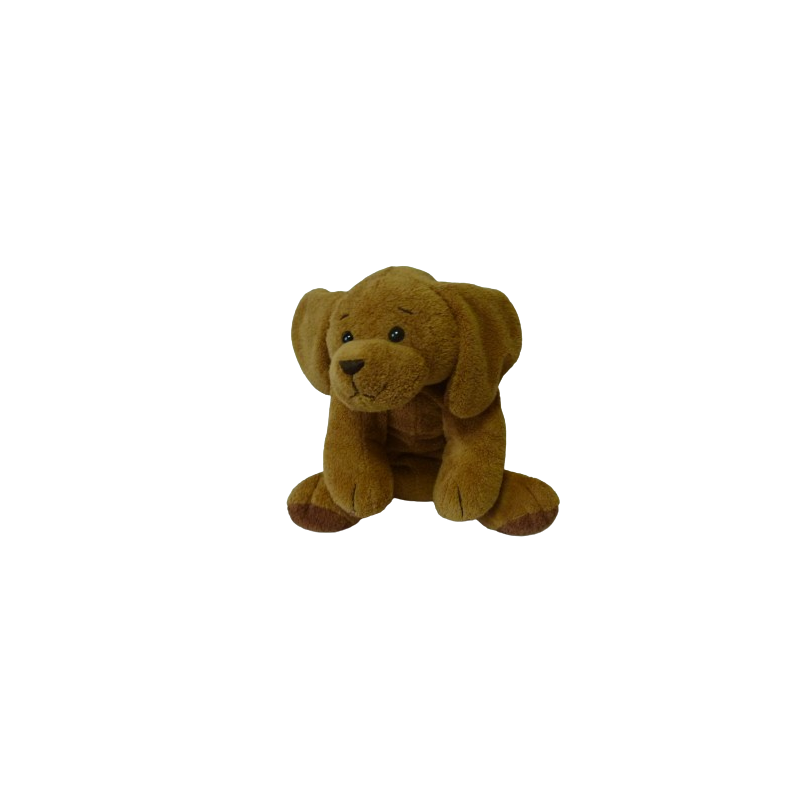 Doudou peluche chien marron 33 cm environ de hauteur et 33 cm environ de large sans compter la queue, billes dans le corps pattes et oreilles. Etat : Comme neuf