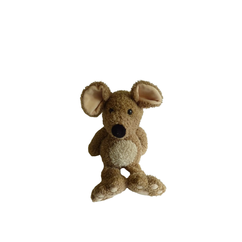 Doudou peluche souris 53 cm environ, marron crème écru. Etat : Comme neuf