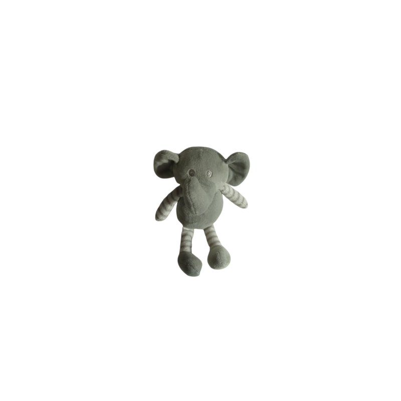 Doudou peluche éléphant 23 cm environ, gris blanc rayures. Etat : Comme neufRecipient :