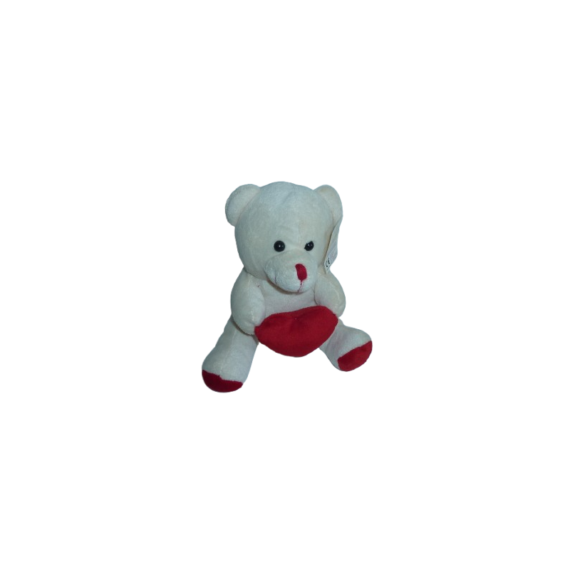 Doudou peluche ours position assise 21 cm environ,écru rouge tient un cœur rouge. Etat : NeufRecipient :